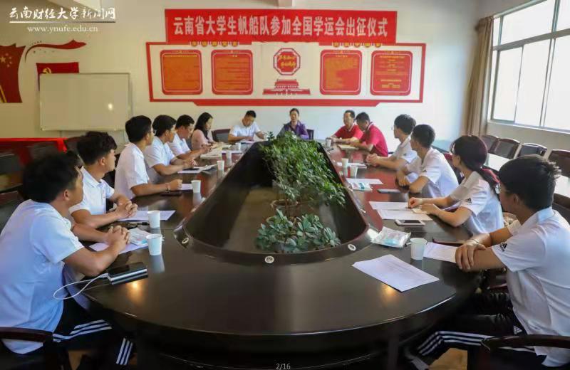 体育部主任朱海营转达了云南省教育厅副厅长张春骅的鼓励和寄语——团结拼搏、乘风破浪、决战青岛、纵享必成,希望帆船队全力以赴,赛出风格。教练员王彬在发言中赞扬了帆船队队员艰苦训练、百折不挠的坚强毅力,希望队员享受比赛,虚心学习。帆船队队长杨晓奎表达出征决心以及为自己争光、为学校争光、为云南省争光的信心。