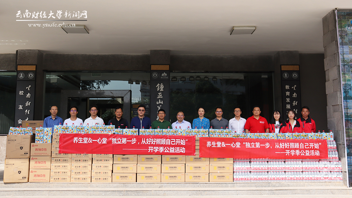 养生堂药业有限公司云贵大区运营总监周航、云南省区经理郭帅、云南省区企划主管王丹,农夫山泉云南大区品牌主管陈佩、品牌主管陈燕沙、客户经理曾鸿举,云南能旺策划部经理李磊,一心堂运营中心总监段四堂、运营中心经理金朝飞,学校资产经营公司总经理段泽华、校友工作办公室副主任胡世文参加捐赠仪式。