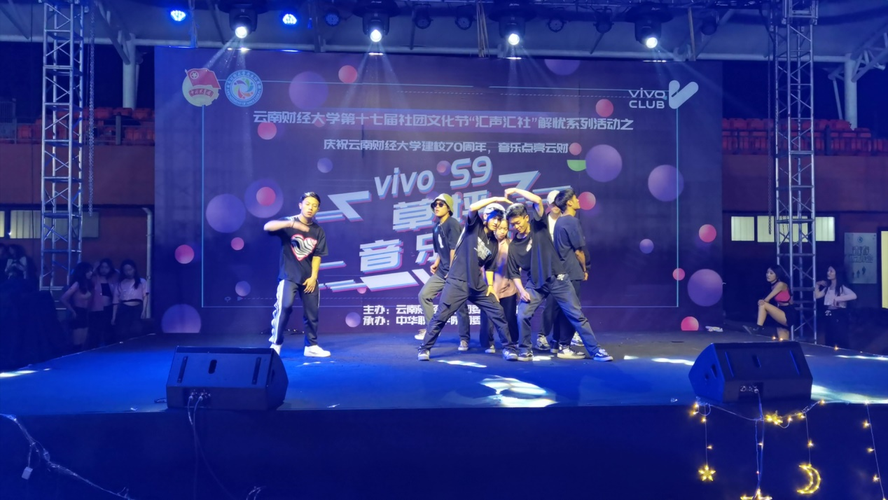 5月21日晚上,校团委与中华职业学院团委在安宁校区田径场联合举办了第十七届社团文化节系列活动之“音乐点亮云财”草坪音乐节。同学们用歌唱与舞蹈的方式呈现了16个精彩节目,展现了云财学生社团积极向上的风貌,为学校70周年校庆预热。