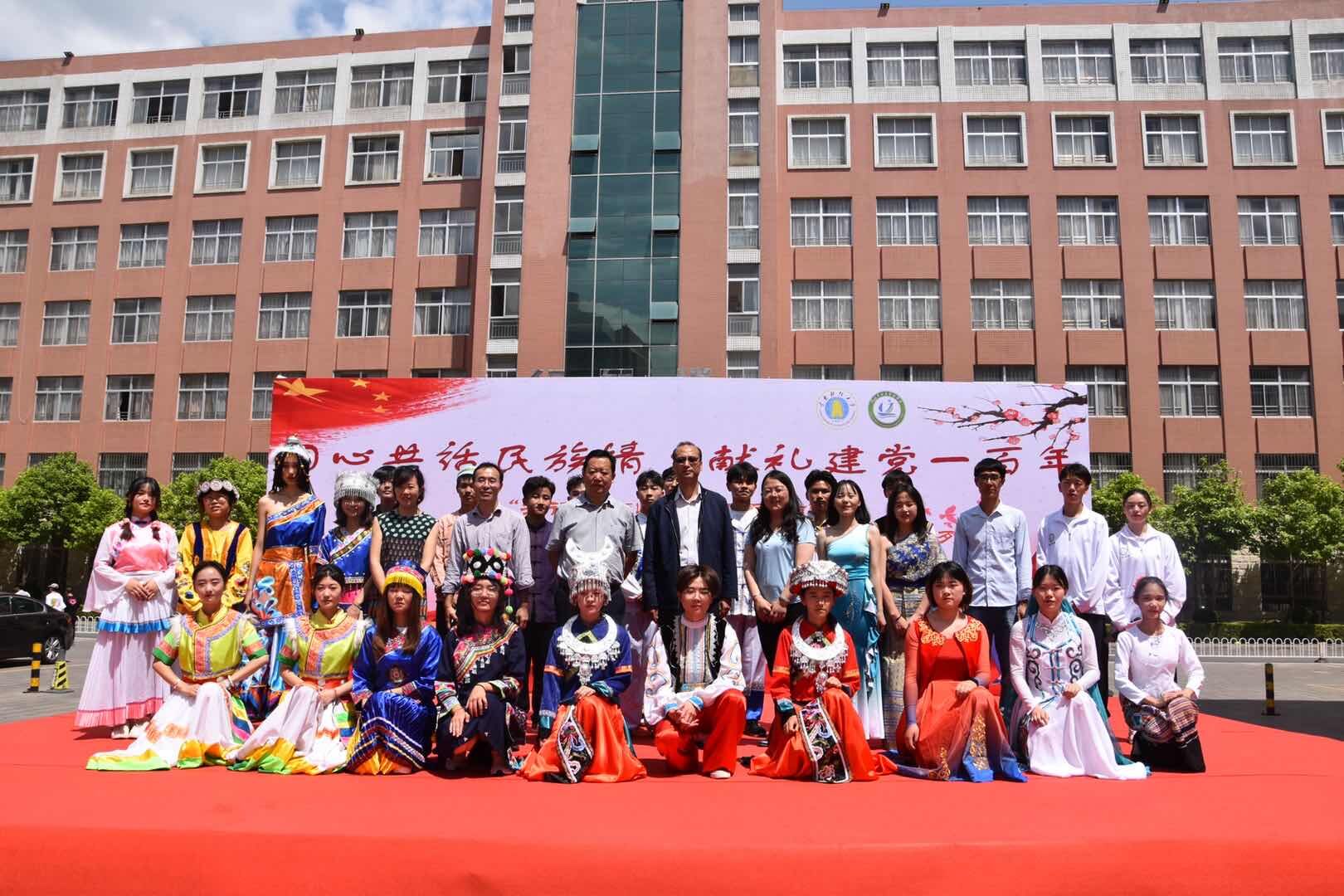 5月28日,bat365在线中国官网登录入口爱国主义民族团结进步教育系列活动第八届民族博览会在南院荟华广场举行,活动由学校统战部、团委主办,旅游与酒店管理学院承办,以“同心共话民族情·献礼建党一百年”为主题,结合少数民族文化特色,展示民族风情,传播民族文化。校党委委员、统战部部长施仲军,校团委书记曾蕾,旅游与酒店管理学院党委书记张向英、院长晏雄、副院长王智慧以及500余名学生参加活动。