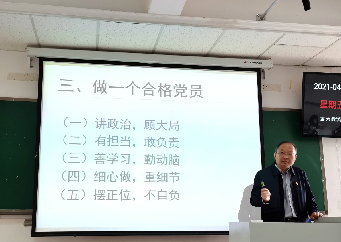 陈永飞从三个方面与同学们分享了他入党的动机:学校老师的示范作用激励了他;班上老党员的先锋模范作用带动了他;党的改革开放政策让他上了大学,使他从此对党的恩情永记心中。此外,他以入党36年的亲身经历为切入点,与大家分享了做一名合格党员“讲政治、顾大局,有担当、敢负责,善学习、勤思考,细心做、重细节”等十点心得体会。并带领同学们回顾了共产党从1921年成立以来,从小到大、从弱到强,得到全国各民族人民的衷心拥护和爱戴,带领中华民族实现了从站起来到富起来,再到强起来的历史,告诫青年学子要“懂党、爱党、信党”,永远跟党走。