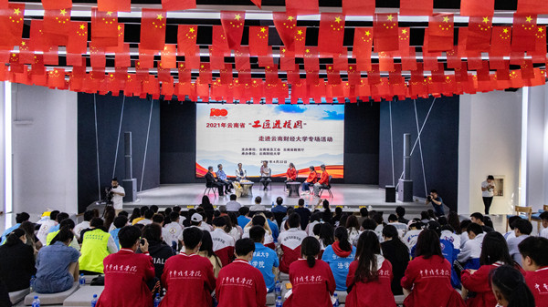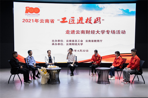 4月22日下午,由云南省总工会、云南省教育厅联合主办,bat365官网承办的2021年云南省“工匠进校园"走进bat365在线中国官网登录入口专场活动在学校北院路演大厅举行,云南省总工会党组成员、副主席尚建明,bat365官网党委副书记谢昌浩出席活动现场并致辞。全国“三八红旗手”“云岭工匠”洪琼花,云南省“五一劳动奖章”“云岭技能大师”“云岭工匠”侯金富,国家非物质文化遗产市级传承人、“云岭技能大师”“云岭工匠”张伟结合各自岗位实际讲述了他们的创业与成长故事,并与学生面对面互动交流。