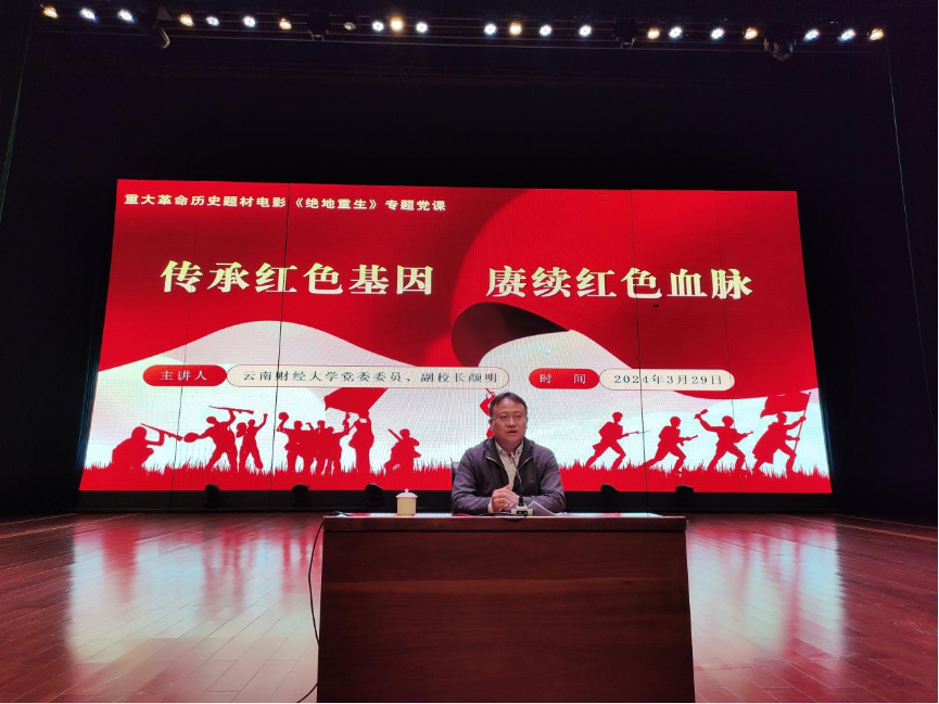 3月29日,支部组织全体党员在汇文礼堂听校党委委员、副校长颜明讲专题党课“传承红色基因 赓续红色血脉”。