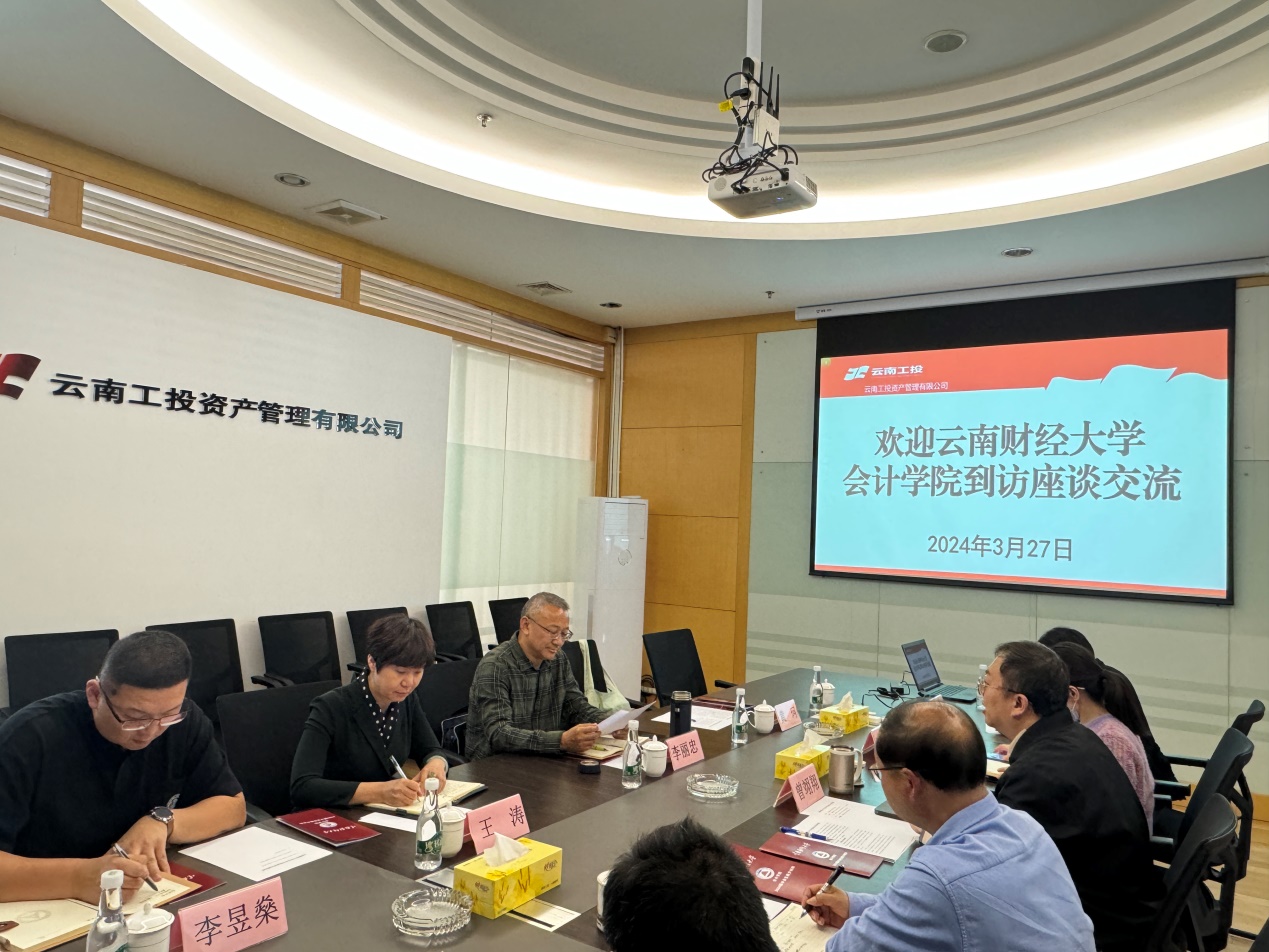 会计学院党委副书记兼纪委书记王涛、项目办李昱燊、学生管理科辅导员黄珂,云南工投资产管理有限公司副总经理陶婷婷、刘太平,综合管理部、资产运营部经理方永斌,财务管理中心经理苏晓萍等参加座谈交流。