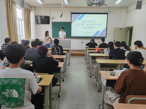 为确保毕业生充分、高质量就业,4月17日,信息学院邀请优秀校友、书辉教育培训学校有限公司创始人施辉允到学院开展“职点迷津”就业指导。本次活动由学院专职辅导员刘洁主持,2024届、2025届毕业生共计400余人通过线上线下的方式参加活动。