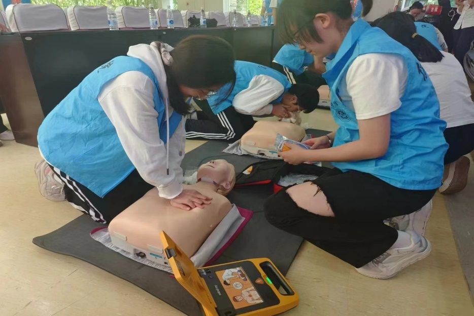 师生党员们走进调度中心,亲身感受了“120背后的守护天使们”是如何通过电话进行急救指导和资源调度等工作,了解工作人员在危急时刻如何为患者提供及时帮助。同学们还参观了救护车内部构造,了解各种医疗设备和急救工具的放置情况以及救护车的急救策略。在急救专家的专业指导下,同学们还学习了胸外按压、人工呼吸、AED查找和使用,以及海姆立克急救法等急救技能。