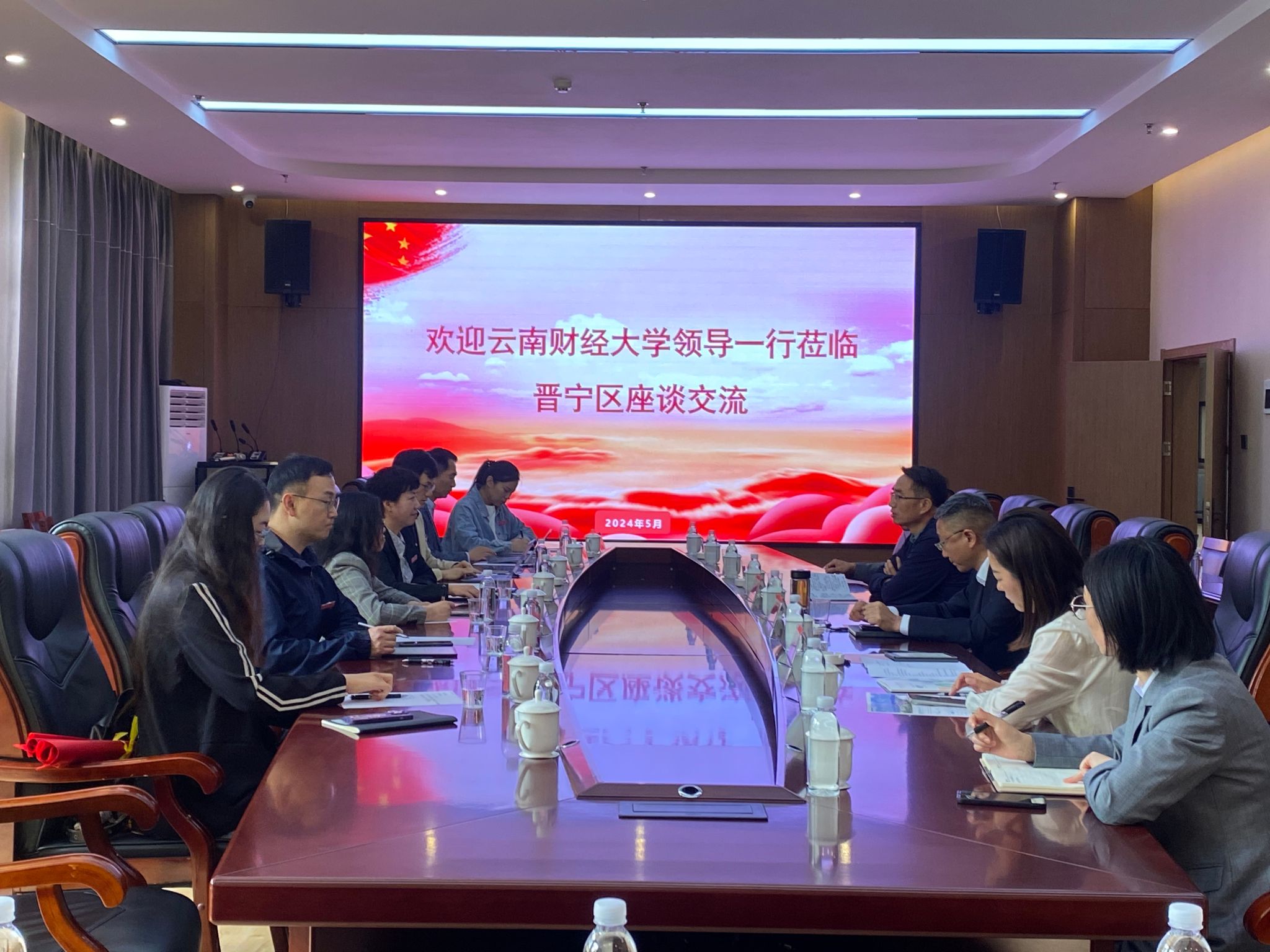 5月10日上午,金融学院与昆明市晋宁区国有资本运营有限公司校企合作框架协议签约仪式暨金融知识专题讲座举行。金融学院党委书记胡小珊、院长周伟,副院长李云仙、杨国辉和李江城,晋宁区区长李松、国有资本运营有限公司董事长杨鸿飞和副总经理聂海艳、区政府办主任韩通、区财政局局长王德伦、区商务和投促局局长钱玉玮、区国资运营服务中心主任李自坤及区国资公司班子成员参加签约仪式。