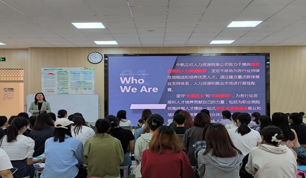 9月26日下午,中凯立欣(曲靖)人力资源有限公司到场宣讲,为毕业生提供包括北京燕莎凯宾斯基饭店、北京三里屯洲际酒店、北京璞瑄酒店等多家国有、合资企业的实习生和就业岗位35个,招聘需求460人。会后,毕业生积极与招聘人员沟通交流,纷纷投递简历。