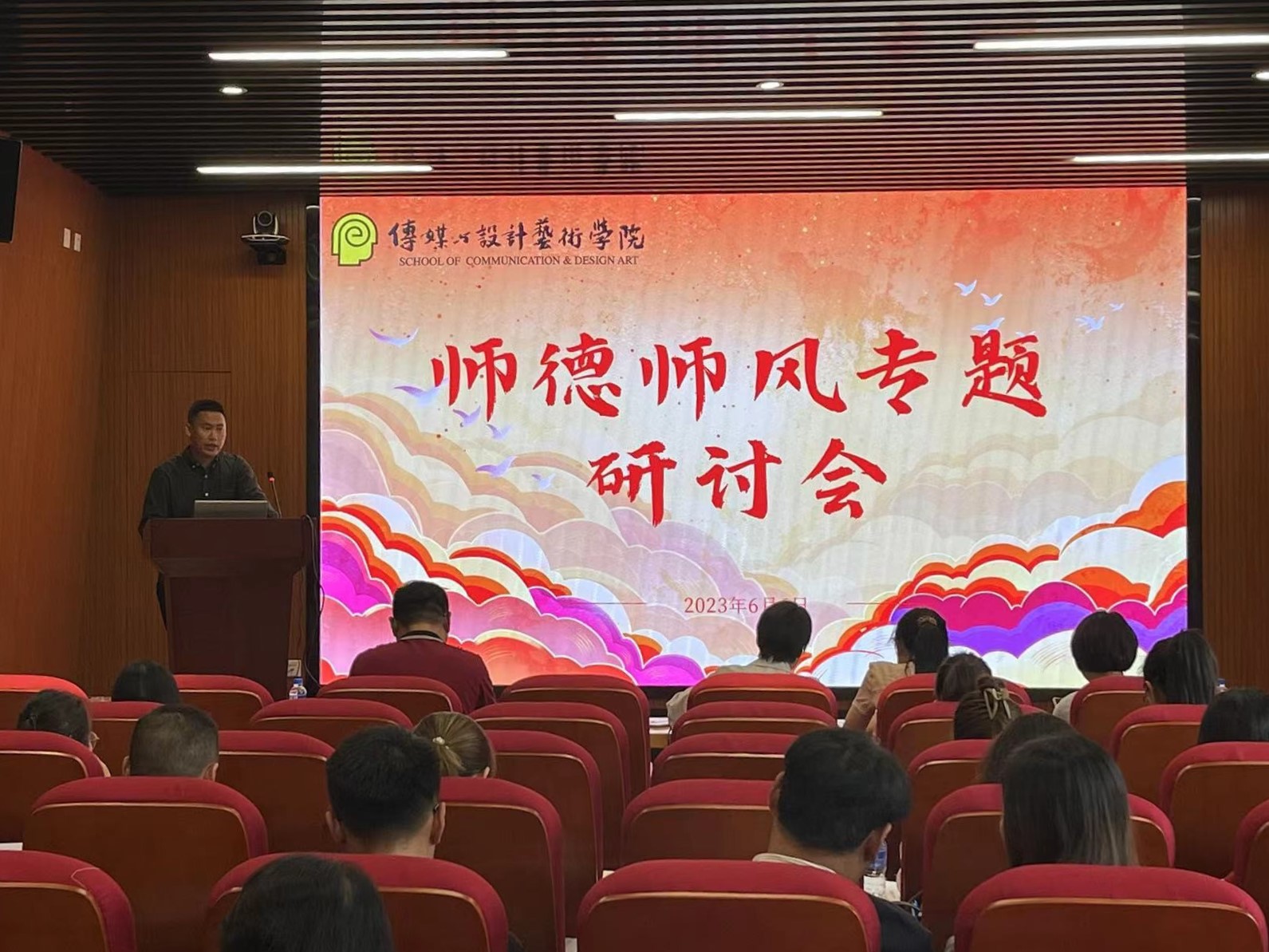 为引导学院广大教师坚定为党育人、为国育才的初心使命,坚持以德立身、以德立学、以德施教,模范遵守新时代教师职业行为十项准则,争做“四有”好老师,6月7日下午,传媒与设计艺术学院召开全体教职工大会,开展师德师风专题研讨会。会议由院长袁洪主持。