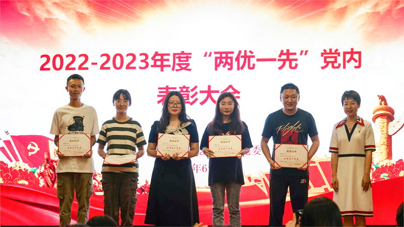 大会在庄严的国歌声中开启。杨青山宣读“两优一先”表彰决定,袁洪、唐磊、李晶分别为“两优一先”获奖代表颁发荣誉证书。优秀共产党员李思蒙、高淑萍代表受表彰的同志发言。
