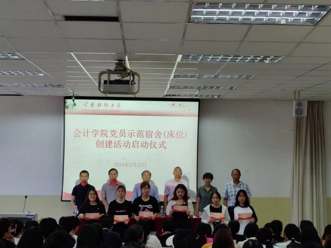 会议宣读了《会计学院关于创建党员示范宿舍(床位)的规定》,强调学院统筹推进党建(团建)工作进学生宿舍要求,落实到文明卫生和谐宿舍创建和学生日常行为规范各方面,学生党员、团员、入党积极分子要发挥作用,做出表率。