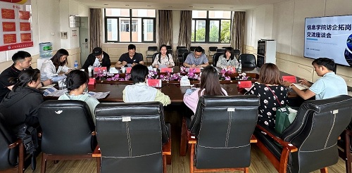 5月26日下午,信息学院在卓远楼北附401会议室召开访企拓岗交流座谈会,邀请云南书辉教育科技有限公司、昆明泽祥电子技术有限公司、盛合晶微半导体(江阴)有限公司、旭腾科技(云南)集团有限公司、昆明智多星知识产权事务代理有限公司、云南时华企业管理有限公司等6家企业人事招聘负责人到校交流座谈。学院党委书记李娟、副院长徐兴贵、计算机科学与技术系系主任李红、学生科副科长张迪、团委负责人徐丹妮参加座谈,会议由李卫东主持。
