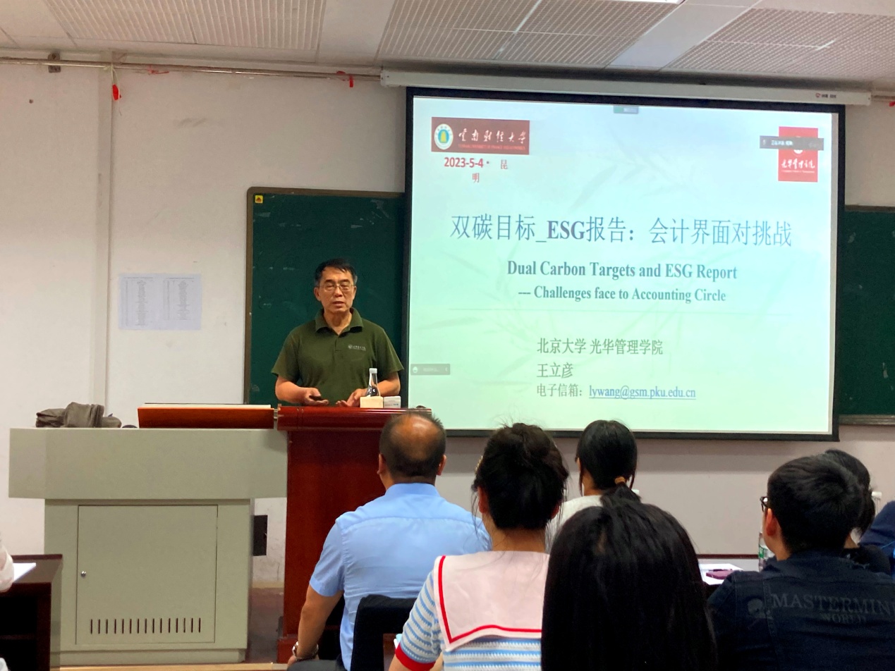 为进一步活跃学术气氛,开阔师生们的学术视野,提高学院的学术水平,5月4日晚,会计学院在逸夫楼804举办“双碳目标与ESG报告:会计界面对的挑战”专题讲座,由北京大学光华管理学院教授、博士生导师王立彦主讲。本次讲座由bat365在线中国官网登录入口首席教授、博士生导师吴昊旻主持,两百余名师生通过线上线下形式参加。