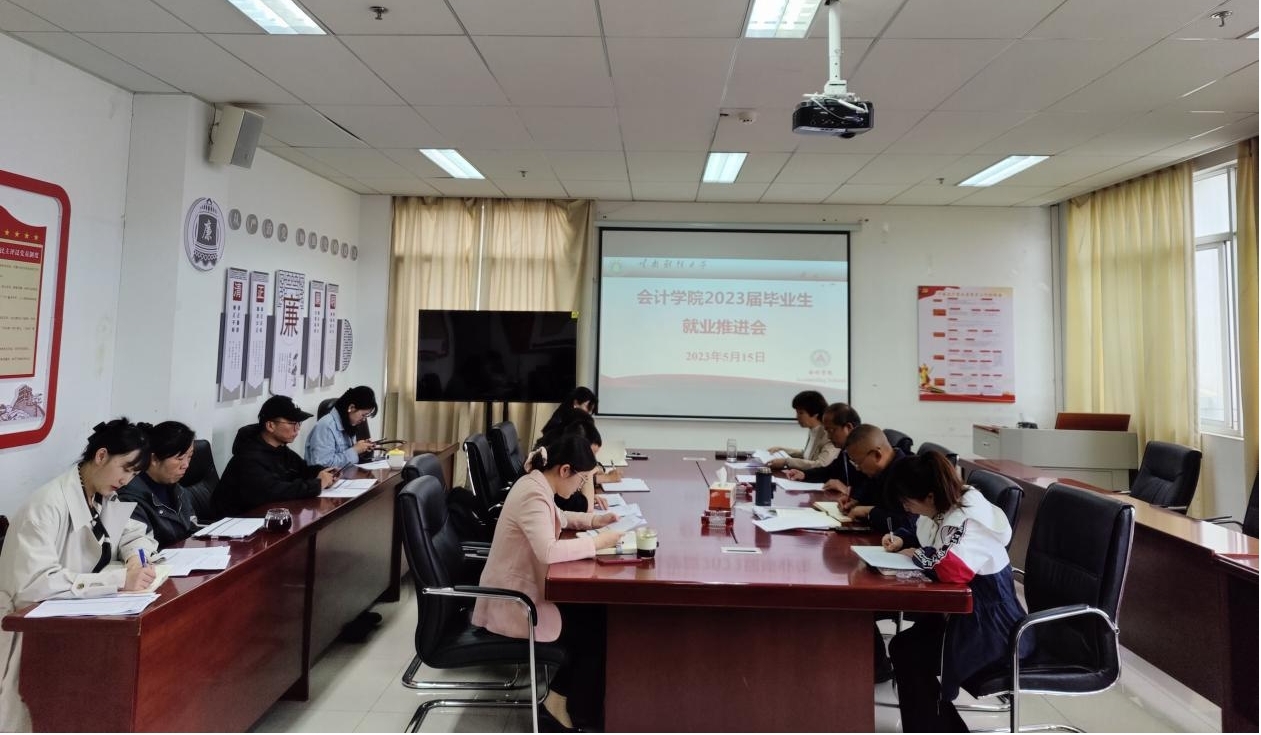 5月15日,会计学院在逸夫楼820召开2023届毕业生就业工作推进会。学院院长陈永飞、党委书记李丽忠、党委副书记王涛、学管科科长李淑兰、全体毕业生班主任及辅导员参会。