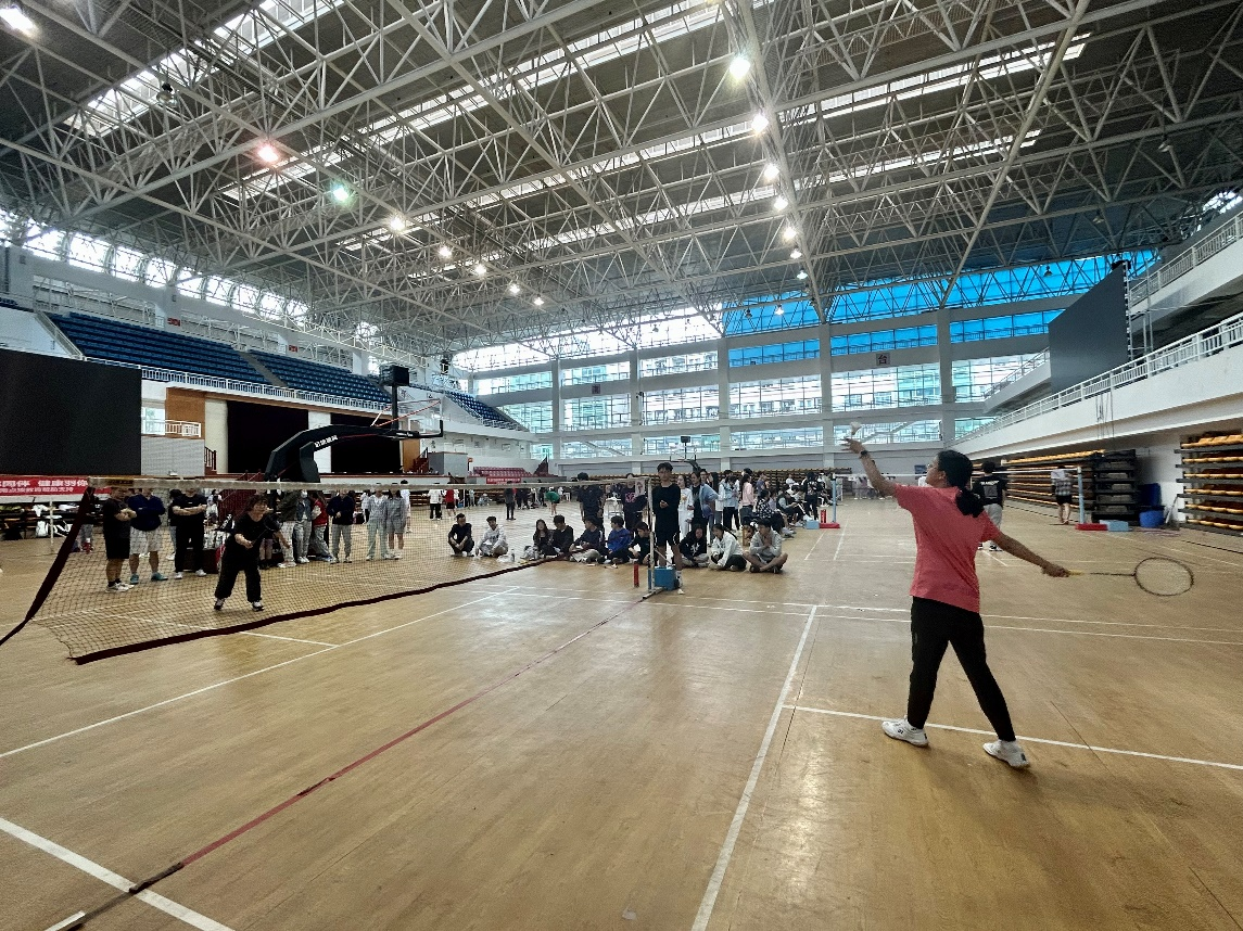比赛开始前,裁判长宣讲比赛规则、引导运动员有序入场。比赛分为男女单打、男女双打以及混双,采用 21分制,3局2胜。比赛正式开始,队员们纷纷在赛场上表现出最好的状态,双方选手激烈拼杀,高远球、扣杀、劈杀、吊球等精彩球技在掌声、欢呼声和呐喊声中展现出来,选手们在属于他们的赛场中展现出健康洋溢的青春风采。比赛结束后,由裁判长宣读比赛结果并颁发奖杯礼品,“夕阳红羽毛球俱乐部”、“不可战胜队”、“羽时俱进队”脱颖而出,分别获得冠军、亚军和季军。