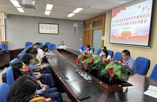 4月14日下午,商学院党委召开学习贯彻习近平新时代中国特色社会主义思想主题教育动员部署会。学院党委委员、各党支部书记、全体教工党员和学生党员代表参会。会议由党委委员、院长杨增雄主持。