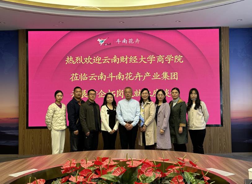 3月17日下午,商学院党委书记王敏带队赴云南斗南花卉产业集团开展“访企拓岗促就业”活动。学院人力资源系主任谢立新、电商营销系主任钱瑛、电子商务暨互联网金融系副教授肖群、工商管理系副教授罗兴鹏、学生科辅导员舒一丹和两名学生随行前往。