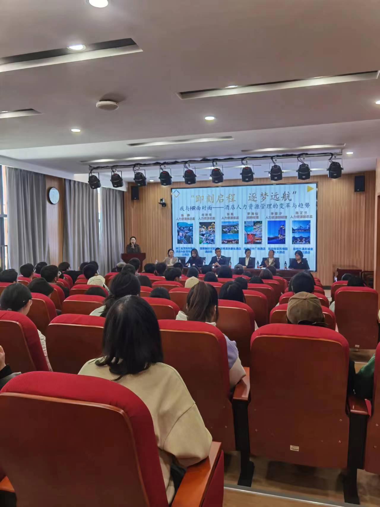 3月17日下午,旅游与酒店管理学院在齐远楼220开展“即刻启程,逐梦远航—— 我与HR面对面”企业沙龙活动,本期活动主题是“酒店人力资源管理的变革与趋势”。学院邀请了丽江金茂凯悦臻选酒店、丽江金茂璞修雪山酒店、昆明融创文旅城酒店群、昆明滇池豪生酒店、昆明佳华广场酒店、昆明南亚风情园豪生大酒店以及昆明古滇名城皇冠假日酒店等7家企业的人力资源总监到校参与本次企业沙龙,学院80余名毕业生及在校生参加活动,活动由学院辅导员谷彦霆主持。