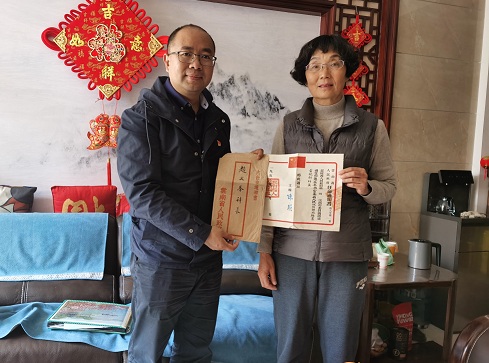 11月19日上午,档案馆馆长吴红刚、副馆长王志梅、档案科科长邹兰、党支部宣传委员王爱斌一行四人到呈贡赵丽娜老师家里接收一批学校50年代创建初期珍贵档案实物的捐赠。