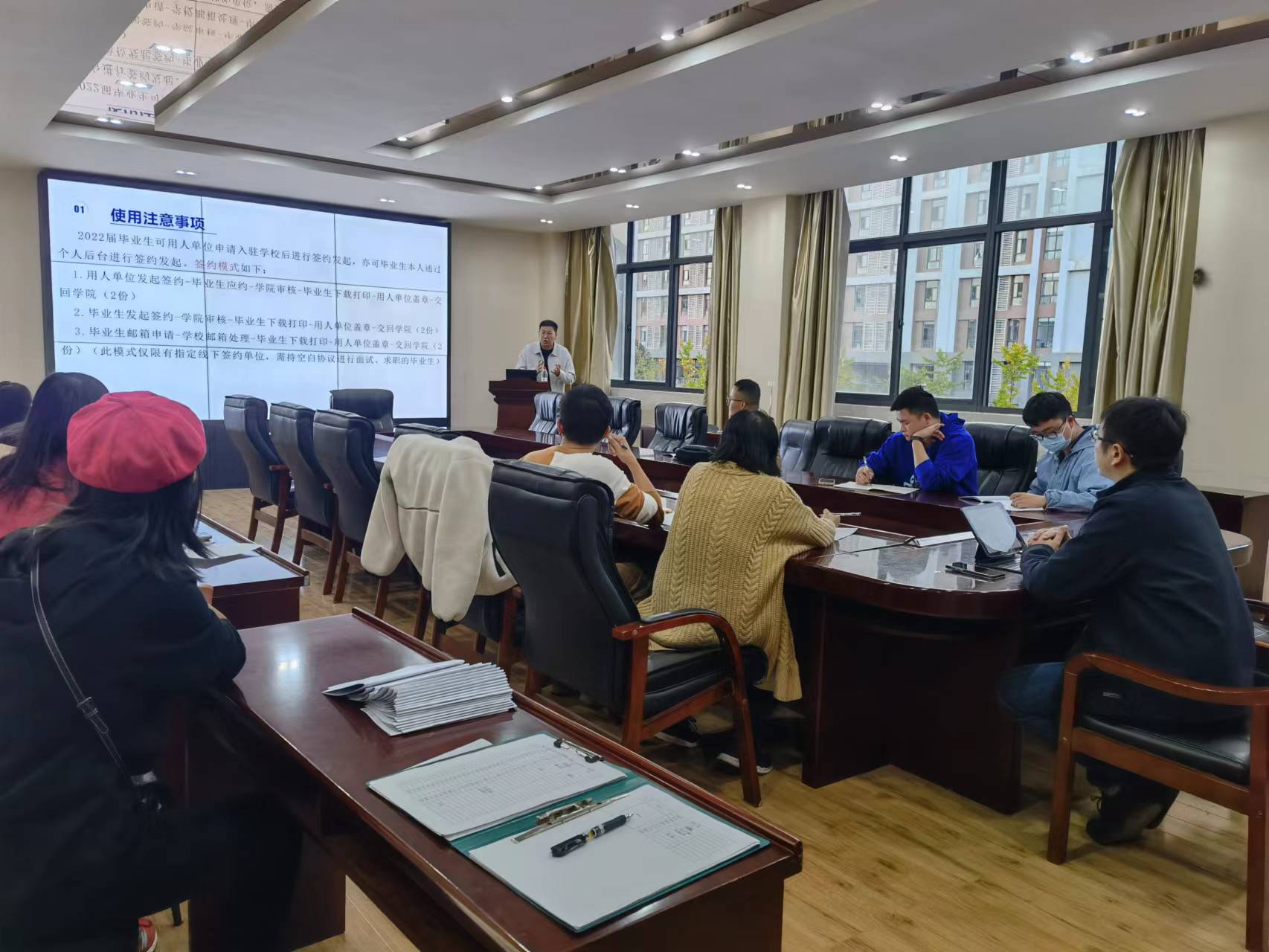 张志超就班主任如何使用学校“云就业”平台进行就业信息审核和就业推荐表审核进行了讲解,并就班主任在审核过程中需要注意的细节进行了提醒。石晓晶通报了学院2023届毕业生前期就业意向调查的情况,要求班主任一对一指导毕业生就业工作,同时就毕业生日常管理及安全教育提出了要求并结合《bat365在线中国官网登录入口毕业生就业统计与核查工作管理办法(试行)》对2023届就业信息审核提出了要求。刘建琳对教育部办公厅【2021】19号文件等进行了解读。