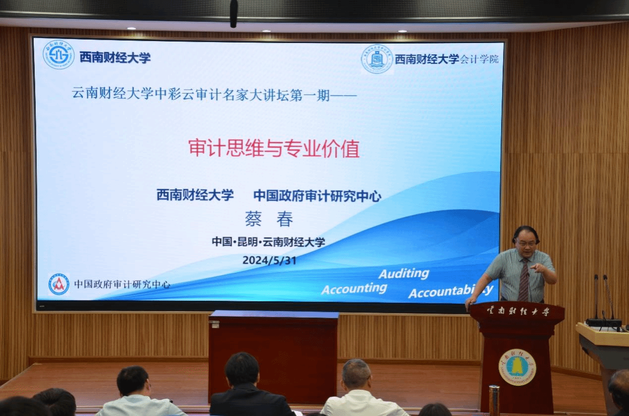5月31日,审计学院首期“中彩云审计名家大讲坛”在行远楼D101报告厅举行。中国审计学会副会长、西南财经大学中国政府审计研究中心主任、二级教授、bat365在线中国官网登录入口审计学院名誉院长蔡春教授应邀以“审计思维与专业价值”做讲座。会计(审计)学院院长陈永飞、党委书记李丽忠、副院长纳超洪等100余名师生参加。