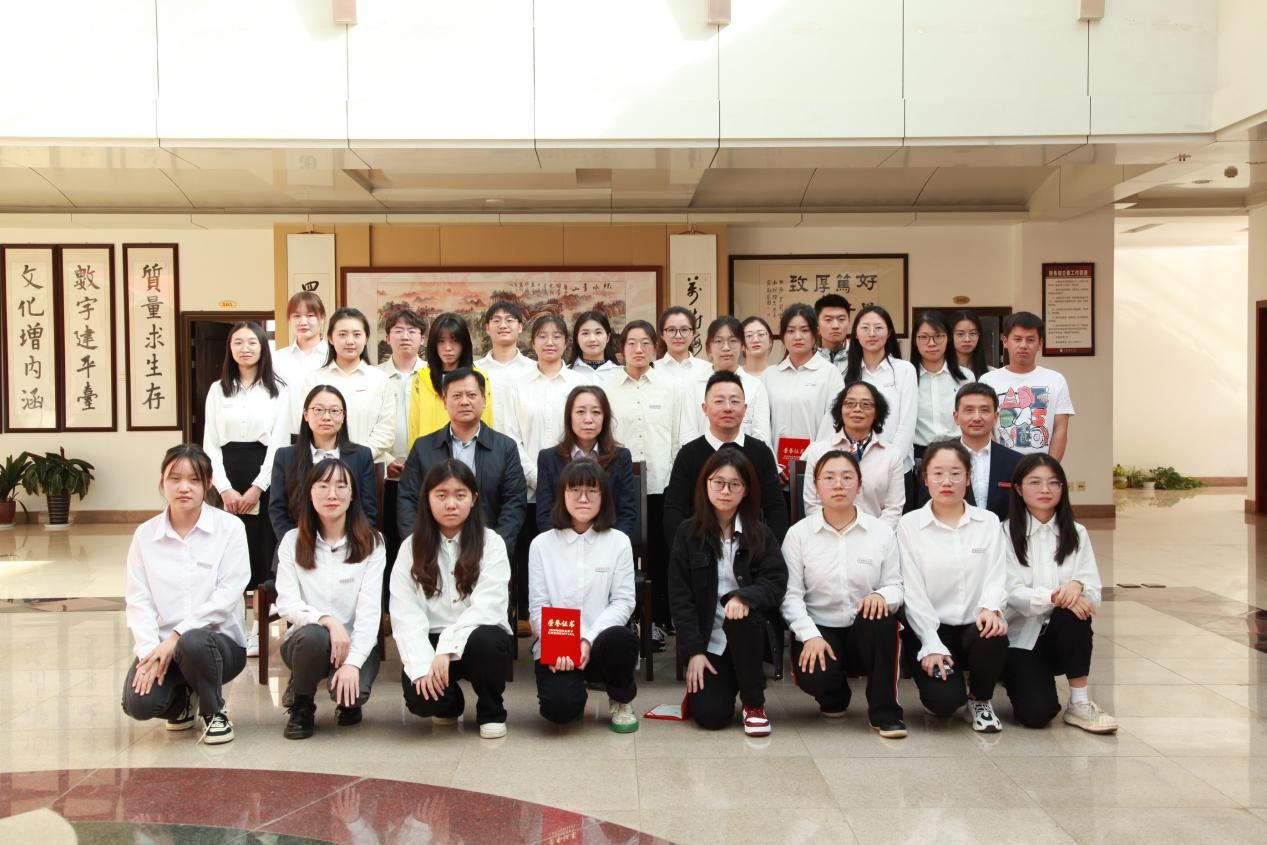与会领导向获奖学生颁发了获奖证书。获奖学生代表郑杭发表获奖感言。仪式结束后,全体成员合影留念。