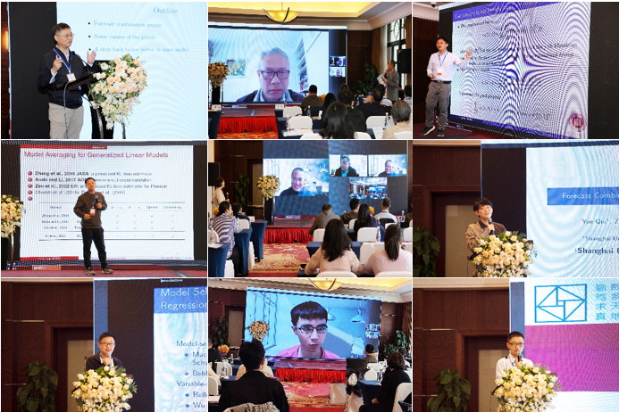 著名统计学家杨宇红教授作题为“Forecast Combination Puzzle: What is really going on?”的大会报告,从组合与选择比较、预测组合的不同目标探讨了简单预测平均与复杂组合方法的稳健性困扰,并提出了有效的解决策略。特邀专家邹国华教授以“Asymptotic distribution theory for model averaging based on information criterion”为题,介绍了模型平均常用的改进信息准则S-AIC、S-BIC,并在这些信息准则缺失的理论性质方面扩充了大量的研究工作。华东师范大学经济与管理学部副主任、统计学院副院长於州教授,华东师范大学统计与数据科学前沿理论及应用教育部重点实验室副主任方方教授,青岛大学数学与统计学院副院长李新民教授,上海财经大学谢天副教授,山东大学严晓东副研究员,暨南大学郑立助理教授分别介绍了各自在模型平均领域的最新研究成果。中国科学院数学与系统科学研究院研究员、国家杰青获得者张新雨教授作综述报告,总结了几种模型不确定性的概念和处理方式,对该领域未来的重要研究方向表达了展望。