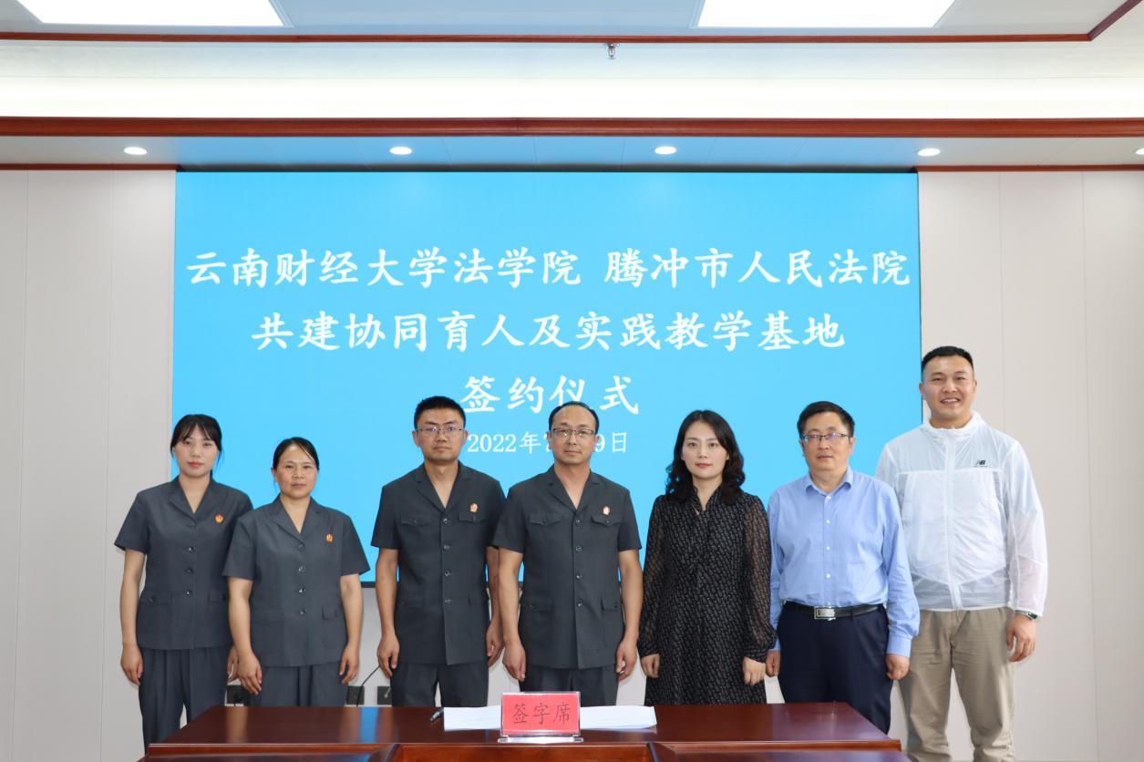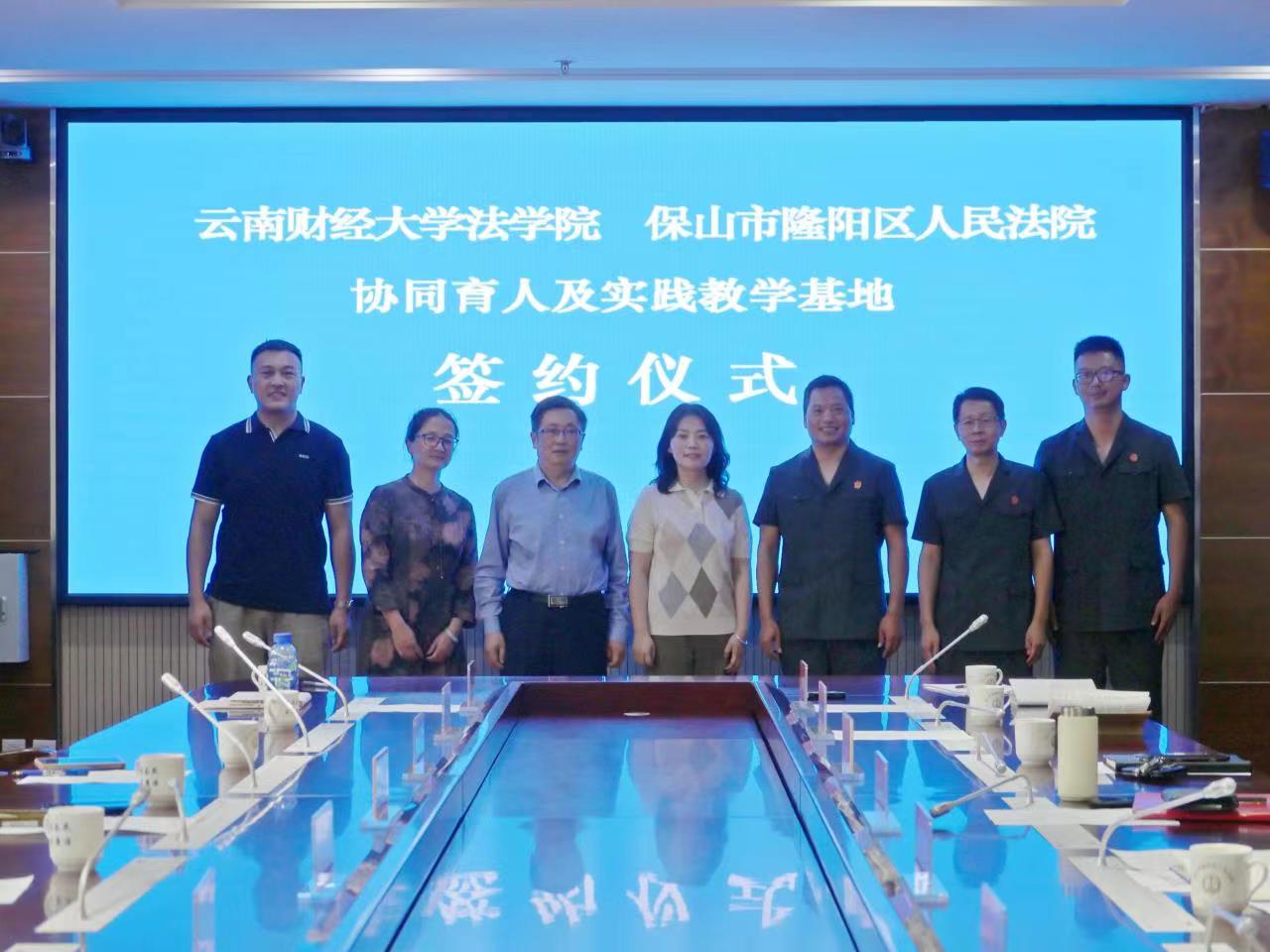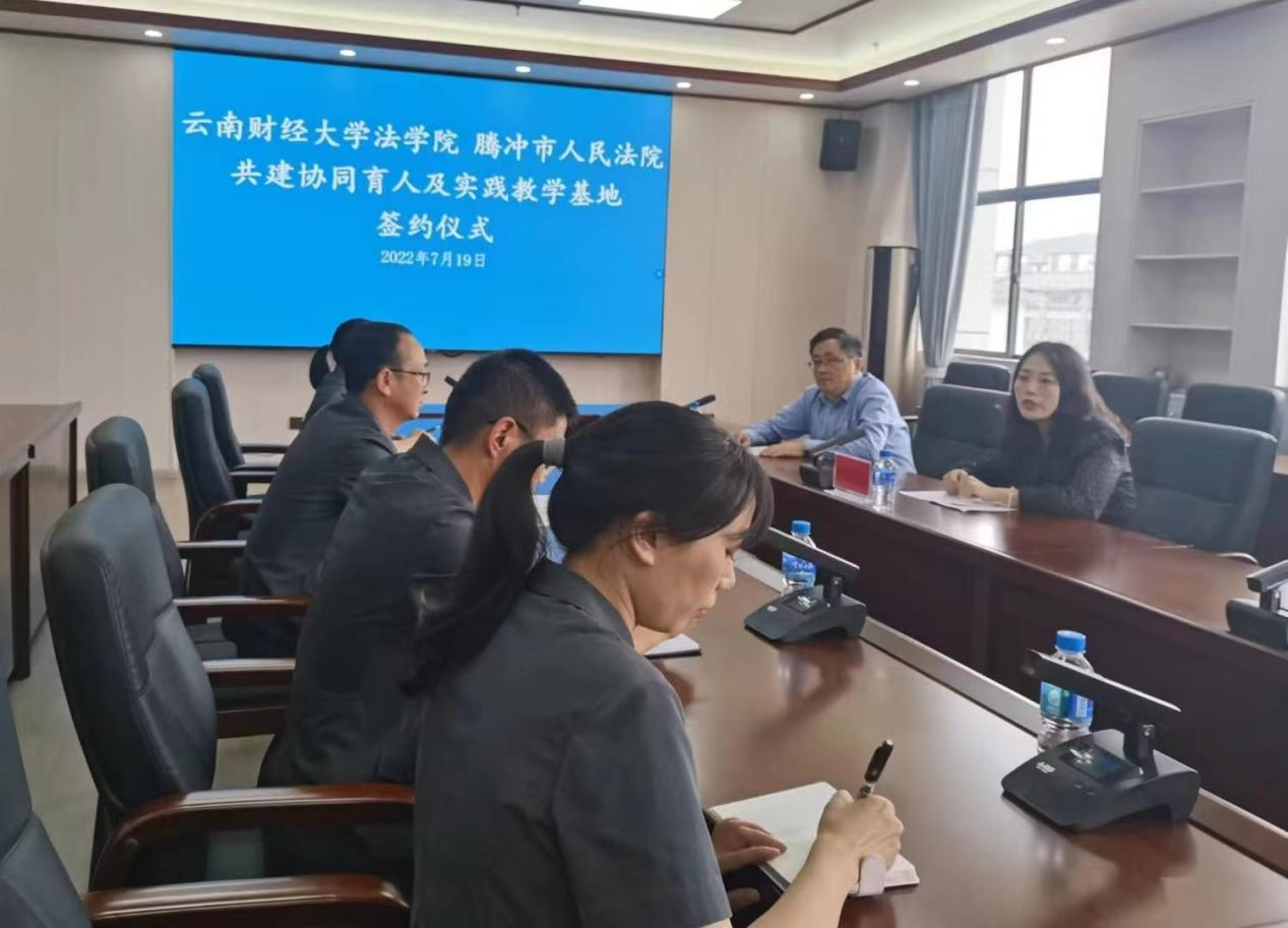 双方开展座谈,就党建工作、毕业生就业、学生实习实践等方面开展深入交流,李姗姗与保山市隆阳区人民法院院长赵加卫签订协同育人及实践教学基地合作协议,并举行基地揭牌仪式。