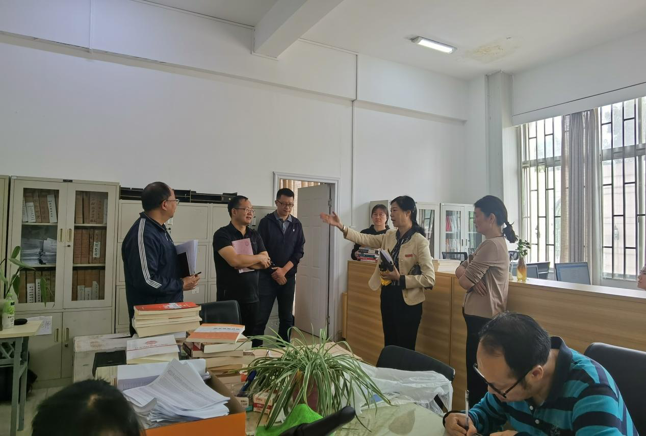 法政学院党委书记李姗姗,副处级组织员余卫平,金融学院党委书记李德清、副书记汪薇萍,以及两家学院相关科室负责人和档案馆全体成员参加了调研检查。