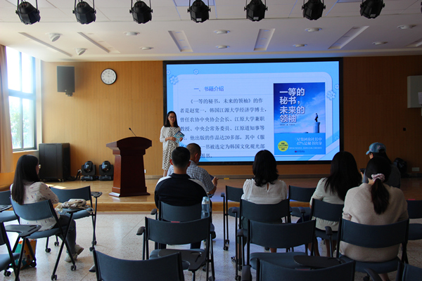 9月21日下午,中华职业学院第一次读书分享会暨科研教学活动在修远楼204室举行。工商管理教学部主任马丽娜老师以“从《一等的秘书,未来的领袖》思考秘书学的发展趋势”为题作分享。副院长陆宁教授、工商管理教学部及管理岗全体教师参加会议。