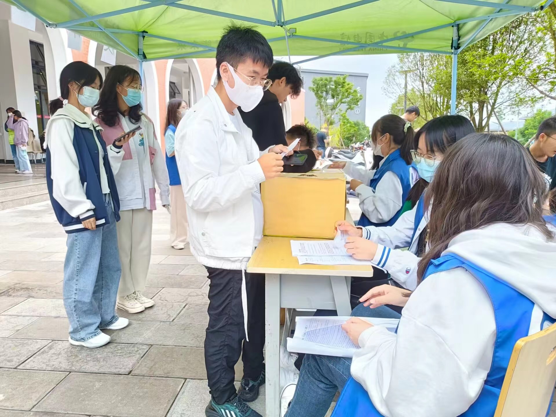 本次活动有反诈知识趣味竞答、国家反诈APP下载及反诈知识普及三个环节,参与同学需随机抽取5道与反诈防诈知识相关的题目进行回答,答对4题即视为答题成功,答题结束后,参与同学在志愿者的引导下完成国家反诈APP的下载。活动中,志愿者们还以近期各类校园网络诈骗警情为例,向同学们普及反诈知识,帮助同学们提高甄别诈骗信息的能力。参与活动的同学们也纷纷在现场拍照“打卡”。