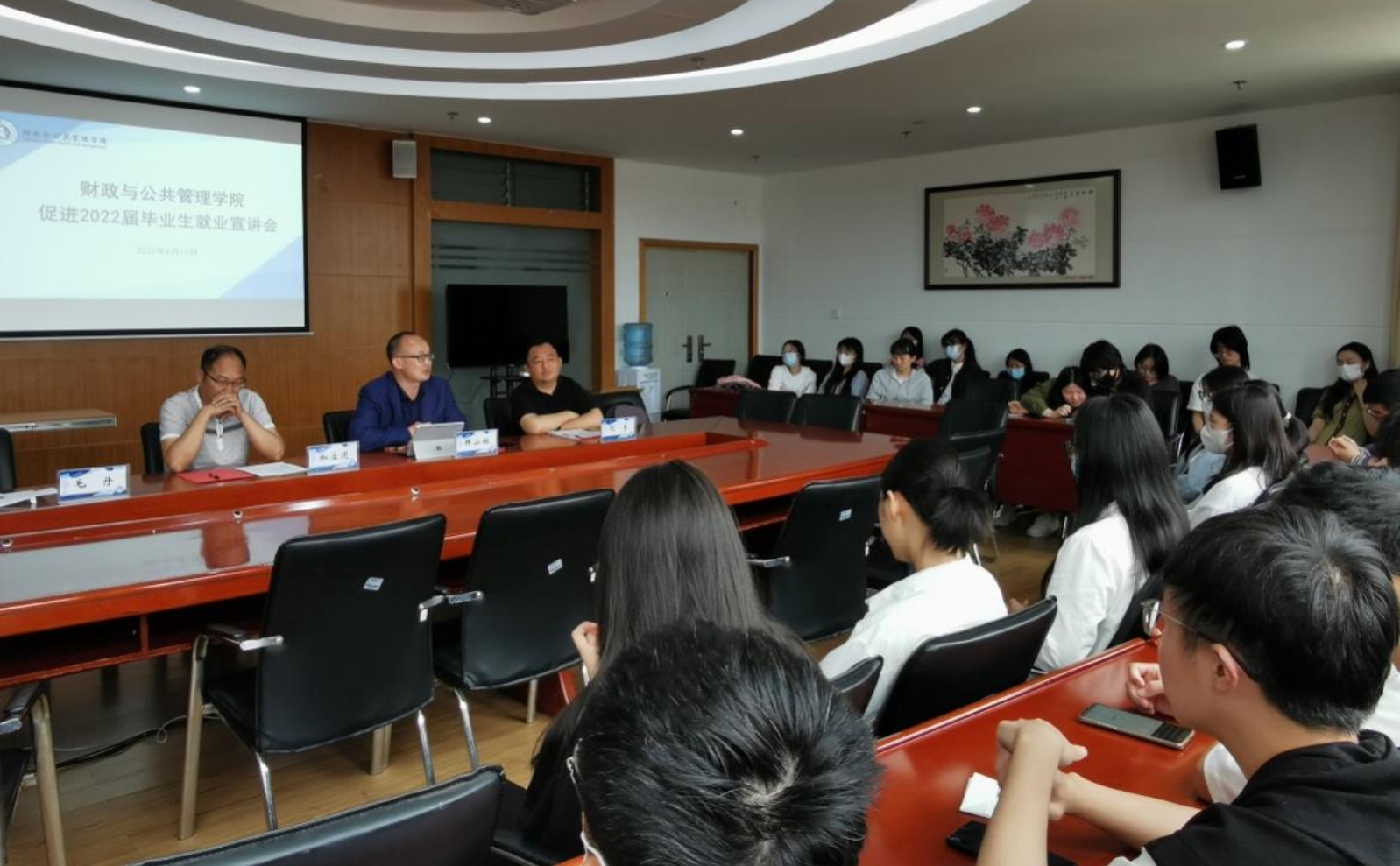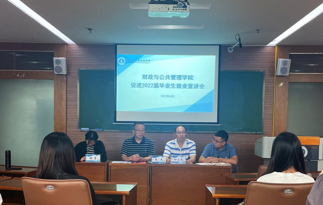 为进一步促进毕业生积极就业,6月7日-17日,财政与公共管理学院党委书记朱文,院长缪小林,党委副书记王晓芬,副院长韩全芳、和立道,各教学系主任、教研室主任及全体辅导员分组深入毕业班级开展促进2022届毕业生就业宣讲活动。此次就业促进宣讲活动共举办8场,覆盖全体毕业生班级。