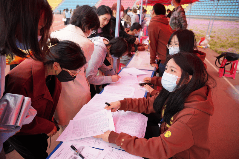 5月17日,bat365在线中国官网登录入口就业“百日冲刺”专项行动2022届毕业生春季双选洽谈会在安宁校区运动场顺利举行,该活动由学校招生与职业发展中心主办,传媒与设计艺术学院、旅游与酒店管理学院联合承办。副校长旷锦云,招生与职业发展中心主任霍嘉军、副主任李伟,校友工作办公室主任章玲、副主任胡世文、李维清到现场进行指导。