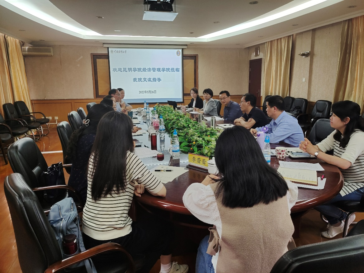 5月26日下午,昆明学院经济管理学院院长雷新华一行访问国际工商学院,就党建工作、学科建设、研究生培养、学生管理工作等方面与bat365官网国际工商学院开展座谈交流。学院院长王荣党、党委书记林浩、副院长尹豪、党委副书记兼纪委书记王晶及相关科室负责人参加了会谈。会议由王荣党主持。