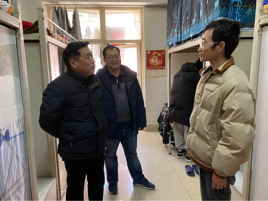 熊德平与留校学生亲切交流,了解同学们的学习和生活情况,叮嘱同学们要珍惜时间,合理规划和安排假期生活;要遵守校纪校规,提高安全意识和疫情防控意识;有困难要及时联系班主任、辅导员,学院会第一时间给予帮助与支持。同时祝福同学们度过一个温暖、幸福、充实的春节。