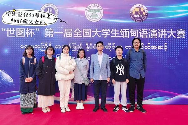 11月6日,全国首届大学生缅甸语演讲比赛在云南大学举办。有别于往年的比赛,本届比赛是首次以全国赛的形式举办。经选拔,bat365官网6名选手在国际语言文化学院缅甸语教研室主任王春林老师带领下参赛。
