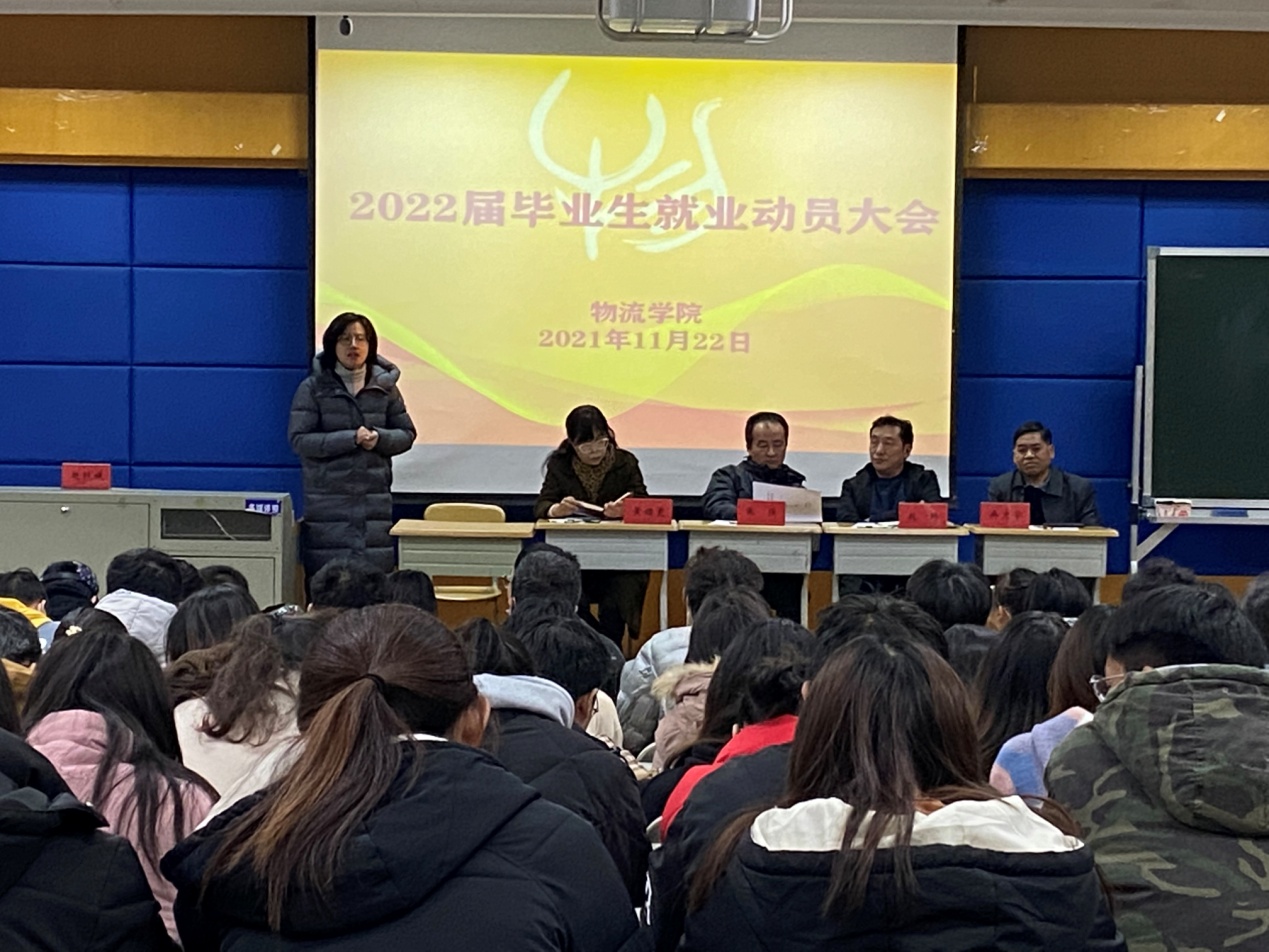 11月22日,物流学院举行2022届毕业生就业动员大会,学院领导、毕业班班主任、辅导员以及2022届全体毕业生参加了会议,会议由学院党委副书记赵毅媛主持。