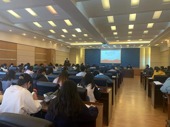 11月26日,国际语言文化学院在致远楼415召开换届选举大会,大会由俞虹同志主持。学院非党员行政领导刘代容、孙婷婷应邀列席会议。学院全体党员参会。
