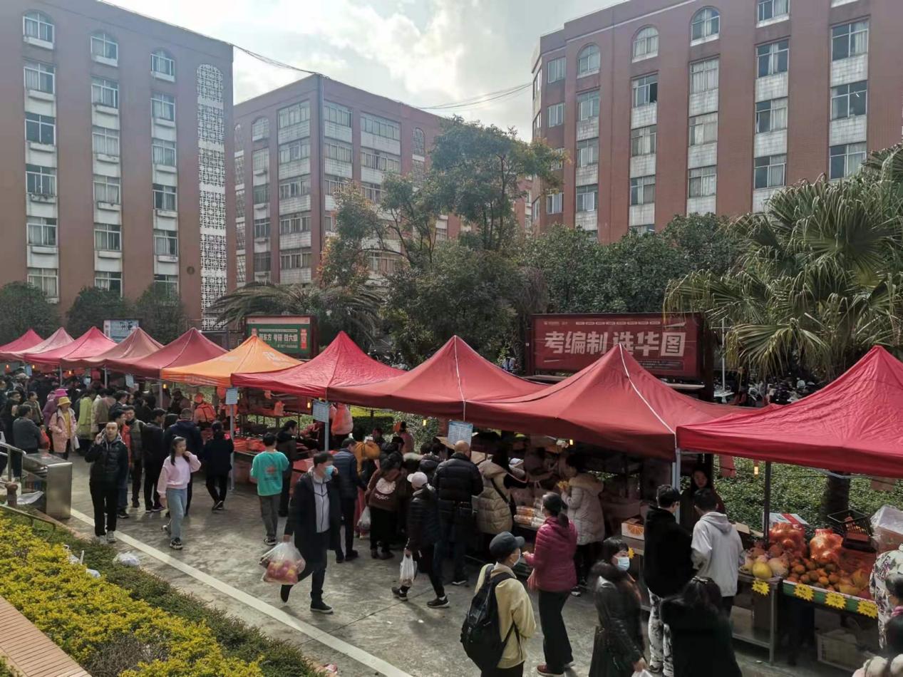 此次展销会共设二十五个售卖点,展销产品涵盖粮油瓜果、禽蛋肉类、面点烧烤共计十余个种类。丰富的农副产品和特色小吃吸引了广大师生前往品尝和购买,受到大家一致好评。