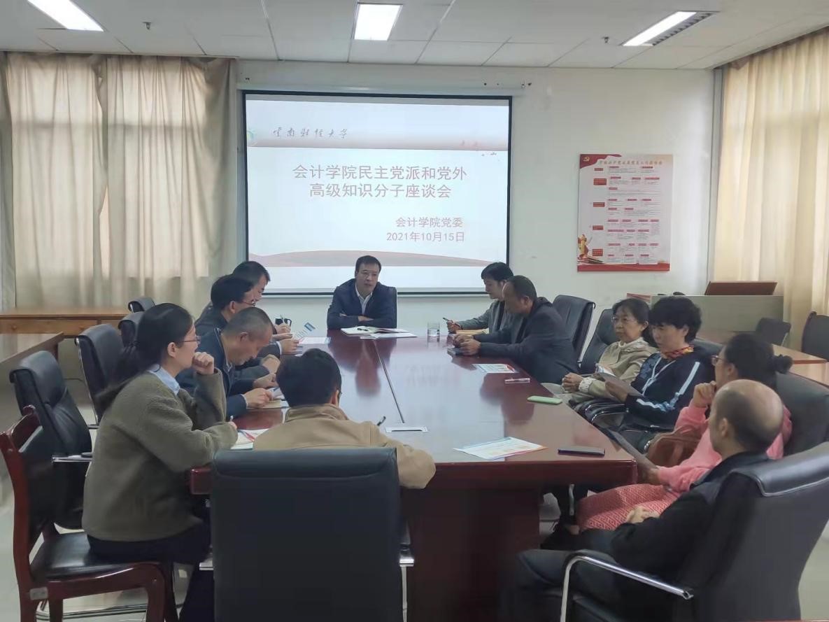 10月15日,会计学院党委在逸夫楼820会议室召开民主党派和党外高级知识分子工作座谈会。学院党委委员、各民主党派教师和党外高级知识分子参加会议。会议由学院党委书记徐良金主持。