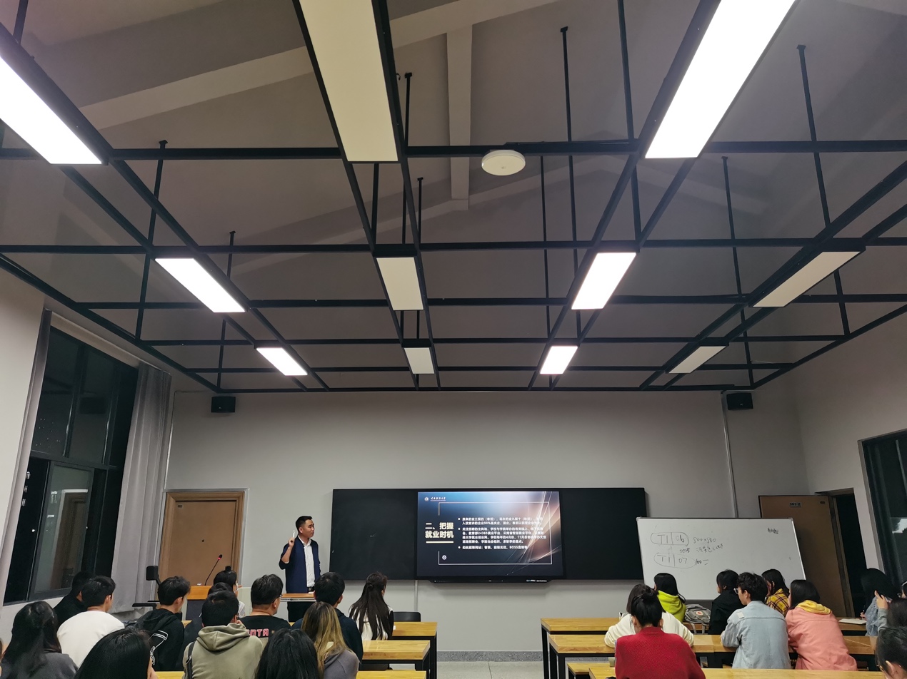 “大四了,我们该做点啥?”荆斌就如何准备求职提出三点建议:一是认真准备简历。多参考优秀的简历,重点部分要用数据来突出;二是把握就业时机。关注各类招聘主阵地,如学校与学院举办的各类线上、线下招聘会、知名招聘网站等;三是重视实习机会。加深对职业岗位工作的认识,明确自身发展定位,确定好人生发展道路。荆斌介绍了就业推荐表、就业协议书的填报及使用,重点讲解了就业协议书的含义,毕业生、用人单位、学校三方的权利和义务,提示毕业生在填写协议书内容时要逐条仔细阅读注意事项,以及就业协议与劳动合同在签订时间、签订主体和使用法律方面的区别。荆斌介绍了高校毕业生求职创业补贴、高校毕业生就业见习补贴、中小微企业吸纳高校毕业生的补贴、基层就业学费代偿、自主创业“贷免扶补”等政策,并围绕全力冲刺考研、正确看待公务员以及毕业生当下关注的热点内容进行交流。