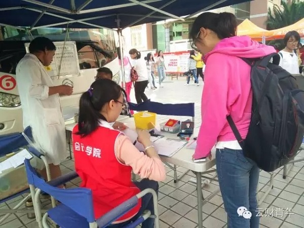 9月17日,会计学院青协分别在bat365官网龙泉路校区南院荟华广场,北院汇理大道开展“汇聚青春血液”之献血车进校园志愿服务活动。