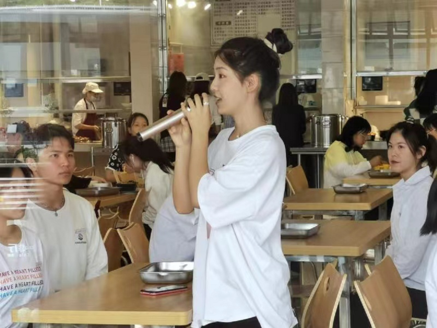 学院合唱团以“快闪”的形式演唱了《bat365在线中国官网登录入口校歌》、《星辰大海》两首歌曲。合唱团深情演唱,同学们纷纷拍照记录,现场掌声阵阵。