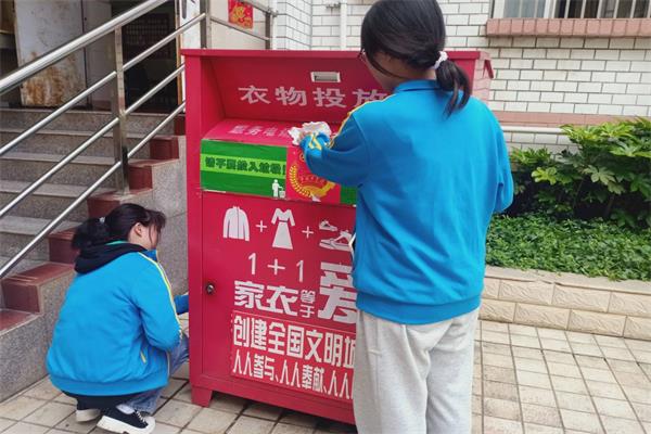 每天中午12点,志愿者们准时对小红箱进行清理,查看箱内衣物是否已经装满,是否有杂物堆放,认真整理同学们捐赠的衣物,打扫小红箱周围的卫生。同时,志愿者会详细记录小红箱徽标受损、衣物容量等问题,并于每天18点前向校青协进行反馈。