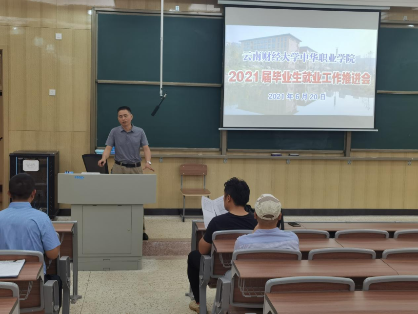 为深入贯彻落实上级有关做好高校毕业生就业工作的文件精神,进一步推进中华职业学院2021届毕业生就业工作,6月20日,中华职业学院在安宁校区鹏云楼1栋111会议室召开2021届毕业生就业工作推进会。学院党政领导、各专业部主任、辅导员和毕业班班主任参加会议,会议由学院党委书记沙磊主持。