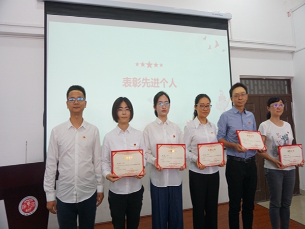 会议对2020-2021年度优秀共产党员、优秀党务工作者进行了表彰。学院党委副书记俞虹宣读表彰文件,学院党委委员张建生、王春林为获奖师生党员颁发奖状。