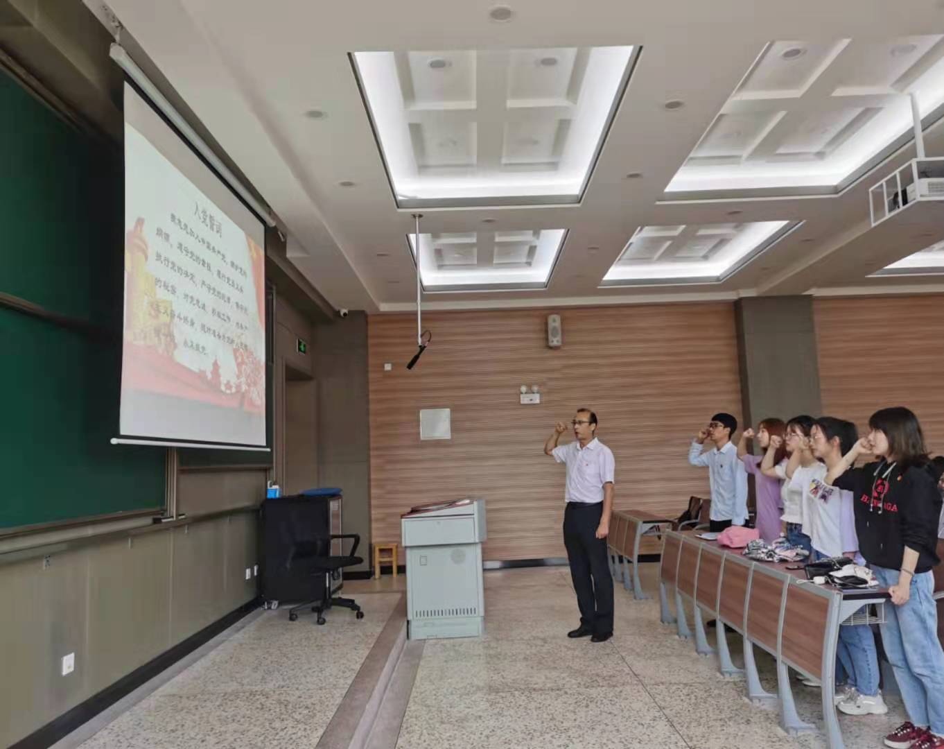 会上,学院党委书记张向英带领全体党员面向党旗重温入党誓词,进一步增强广大党员的归属感、使命感和责任感。随后,他以“第一次国共合作”为题为全体党员上党课,回顾党的光辉历程,引导师生党员学党史、知党情、强党性,强调党员和群众要始终信党、爱党、跟党走。