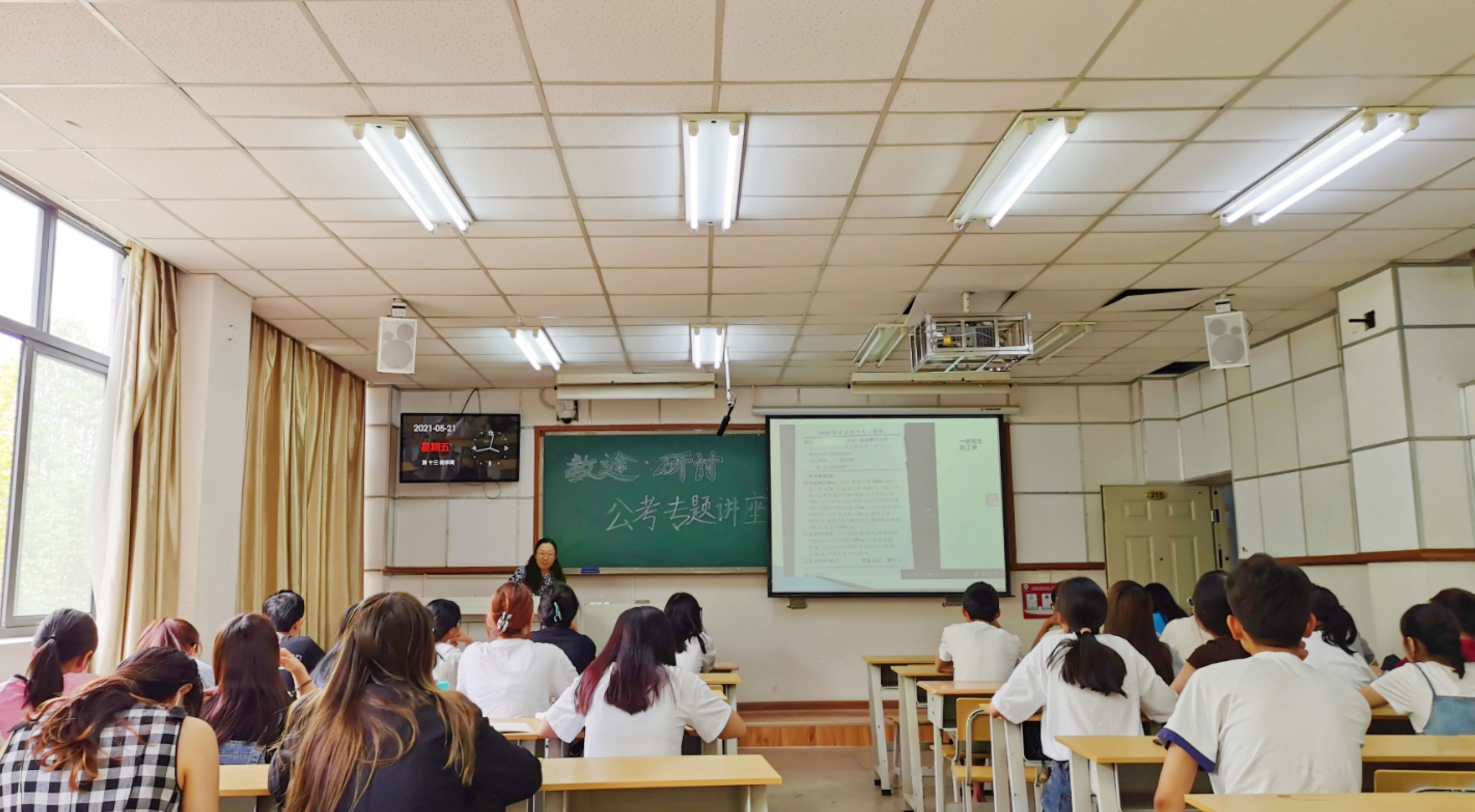 “数途•研讨”是学院“数途”系列专题活动之一,本次公考专题讲座的举办,对引导学生认识公考形势,定位公考目标,准备公考招考起到了重要作用。