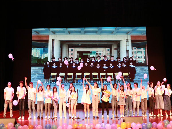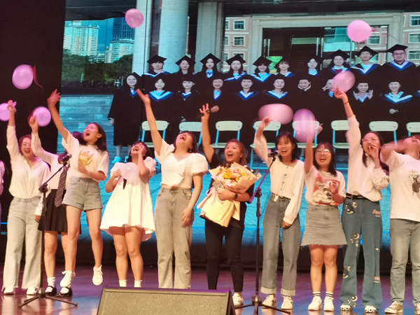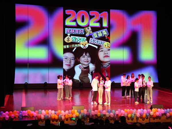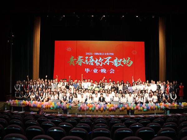 5月23日晚,国际语言文化学院在北院汇文礼堂举办2021届“青春语你不散场”毕业晚会。 学校招生与职业发展处教师周梅,学院党委书记杨秀伟,副院长刘代容、段春锦、孙婷婷,党委副书记俞虹,学生管理科科长王芳,团委负责人马婧,各毕业班班主任,教师代表以及各兄弟学院学生干部代表、学院2021届全体毕业生和广大青年学生们参加晚会。