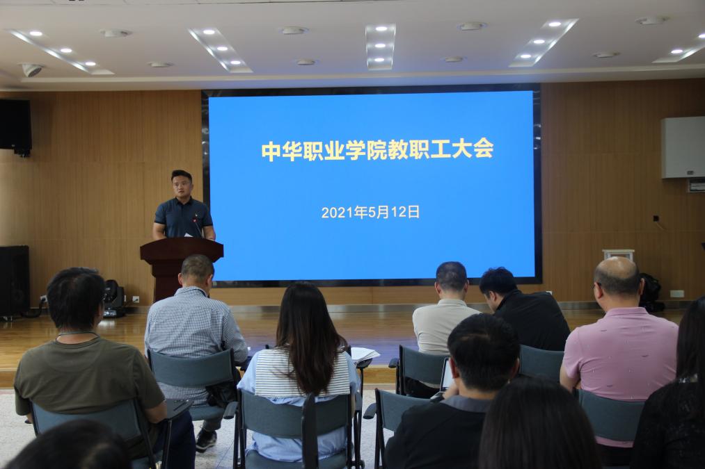 5月12日,中华职业学院党委书记沙磊在教职工大会上组织学习“bat365在线中国官网登录入口‘十四五’发展规划和二〇三五年远景目标纲要”。沙磊从“十三五”期间主要发展成就,“十四五”时期及未来发展面临的机遇与挑战、二〇三五年远景目标暨规划的指导思想和基本原则,“十四五”时期的建设任务与举措、保障措施五个方面进行讲解。